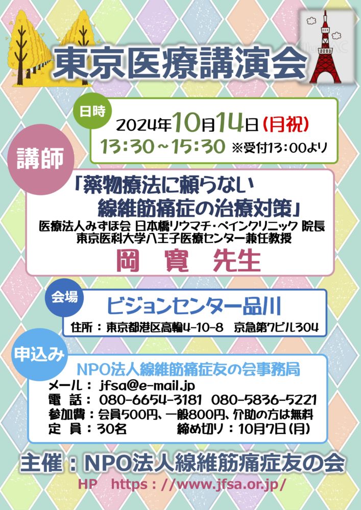 お申し込みについては線維筋痛症友の会ホームページをご確認ください。