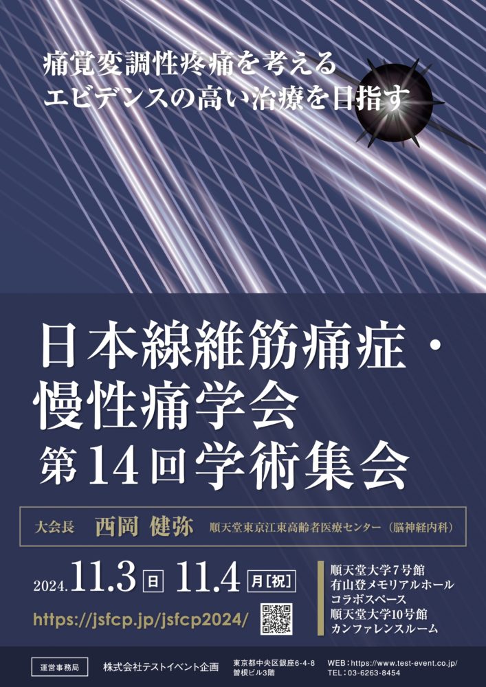 2024年11月3日(日) 〜 11月4日(月祝)に日本線維筋痛症・慢性痛学会 第14回学術集会が開催されます。